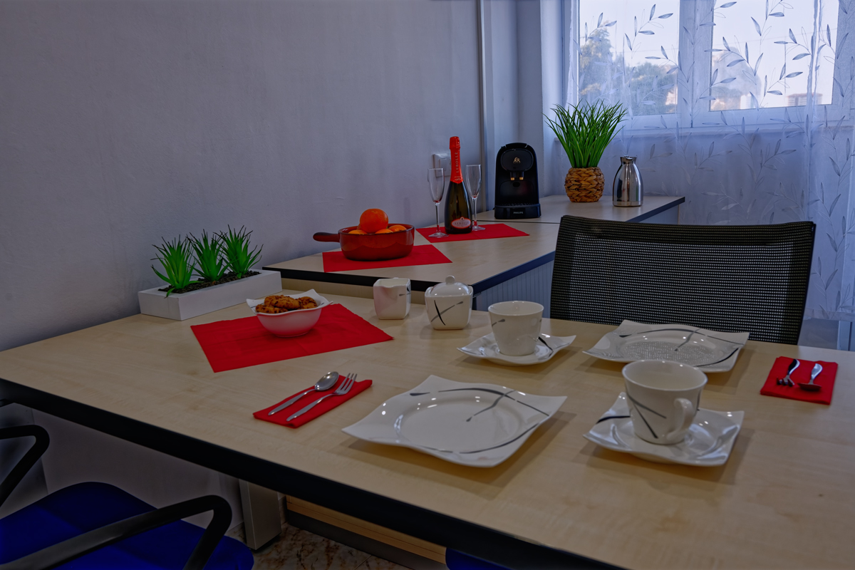 Du hast im Studio einen großen Arbeitsplatz mit 2 Monitoren, WLAN und Netzwerkanschluss. Ebenso ist ein IP Telefon vorhanden.