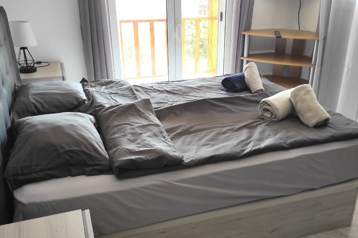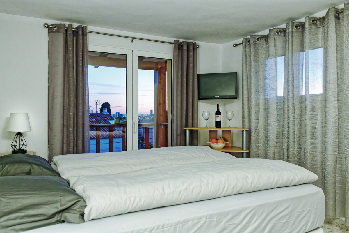 Alle Fenster und die Balkontüren im Studio sind mit einem Moskitoschutz ausgestattet, für einen erholsamen Schlaf bei offenen Türen. Dazu gibt es ein tolles Doppelbett mit direkter Sicht auf das Lichterspiel der Skyline von Calpe.