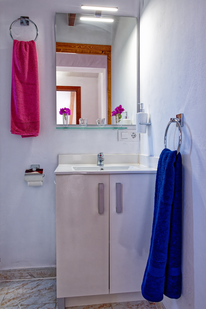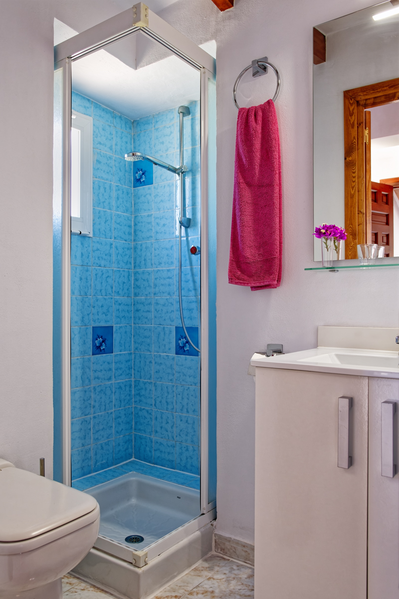 Das Obergeschoss hat ein eigenes kleines Badezimmer mit Dusche, WC und Waschbecken.
